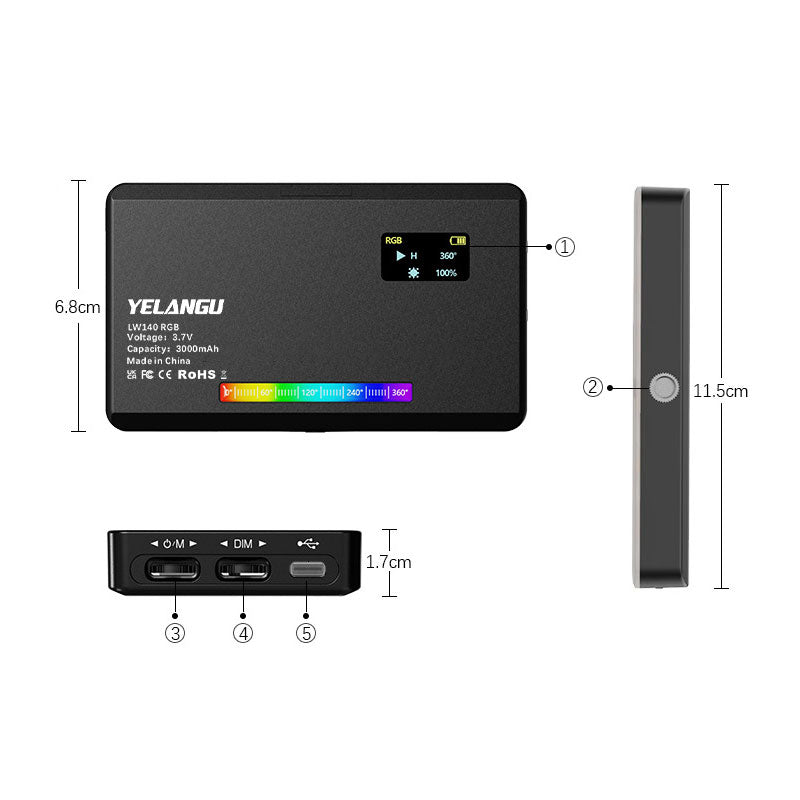 * LW140-RGB fill light: 2500K-9000K cold and warm light