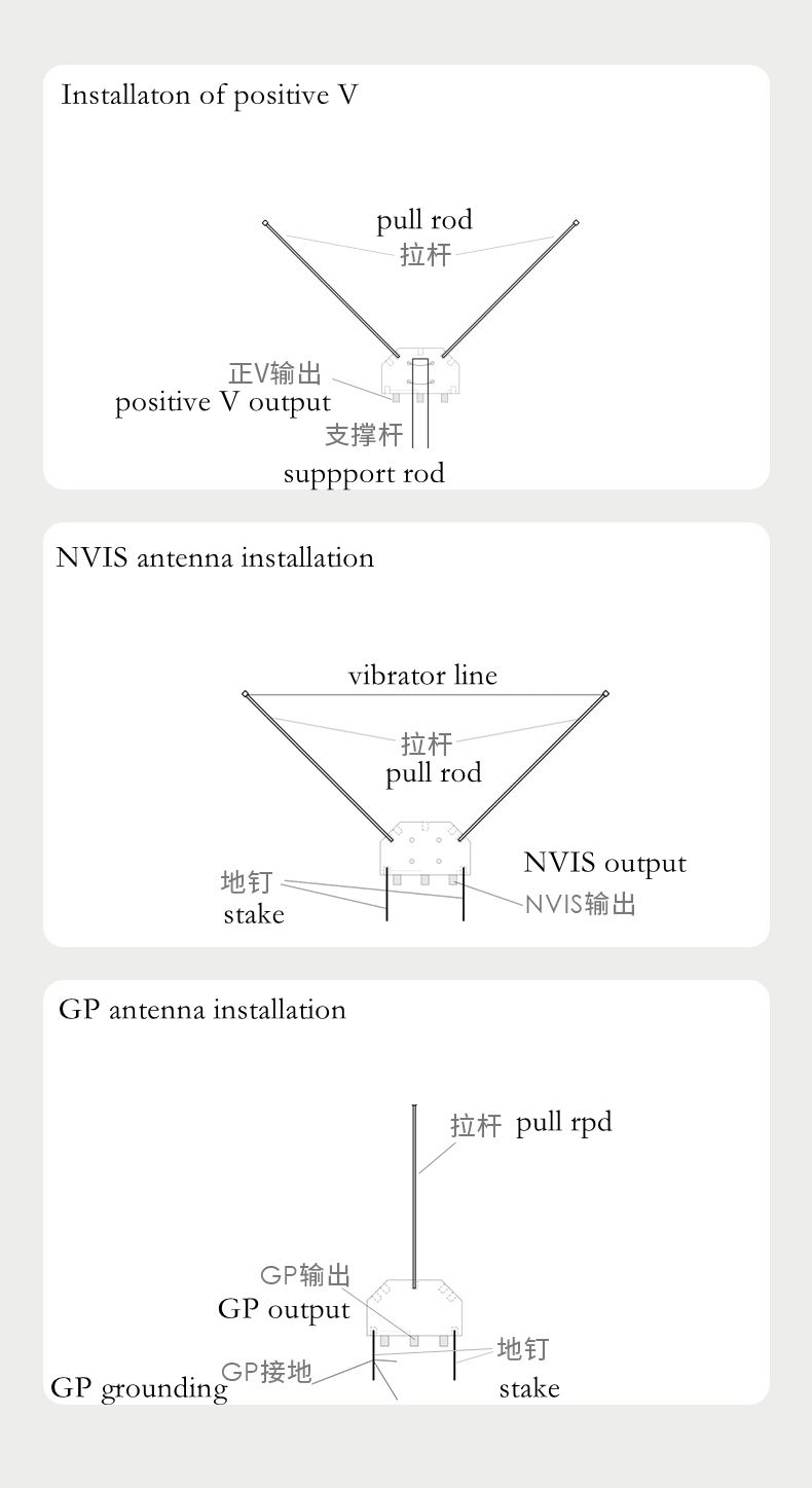 - Antenna components are spliced and combined like building blocks to realize clever changes of NVIS, positive V and GP antennas in three different forms.