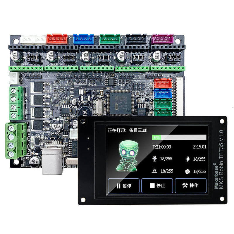 The MKS Robin Nano motherboard is a product independently developed by the Makerbase to meet market needs. The firmware configuration method is simpler, and is equipped with a TFT touch screen. The operation interface is simple; the firmware can be easily upgraded through the SD card and the user interface can be customized, suitable for mass-produce 3D printer manufacturers used as main control board.