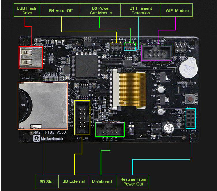 Makerbase MKS TFT35 Touch Screen 3D Printer Color Display 3.5 Inch SD U Disk Side Plug