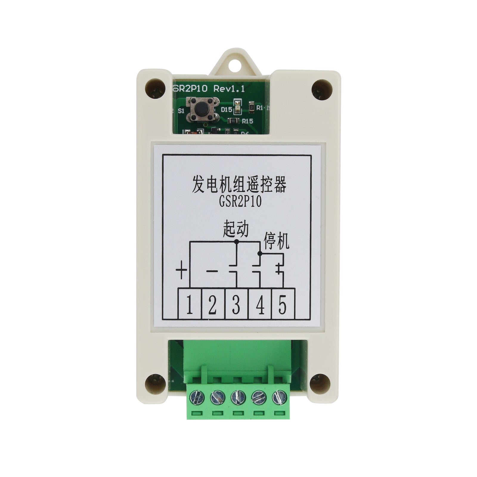 The diesel remote control receiving module GSR2P10 is specially designed for remote starting and remote stopping of diesel engines and gasoline engines similar applications. The module uses a wide voltage DC/DC power chip and a single chip microcomputer design, so it has a wide working power voltage range (12V/24V universal), easy pairing (can pair multiple remote control transmitters and multiple remote controls) , reliable operation, etc.