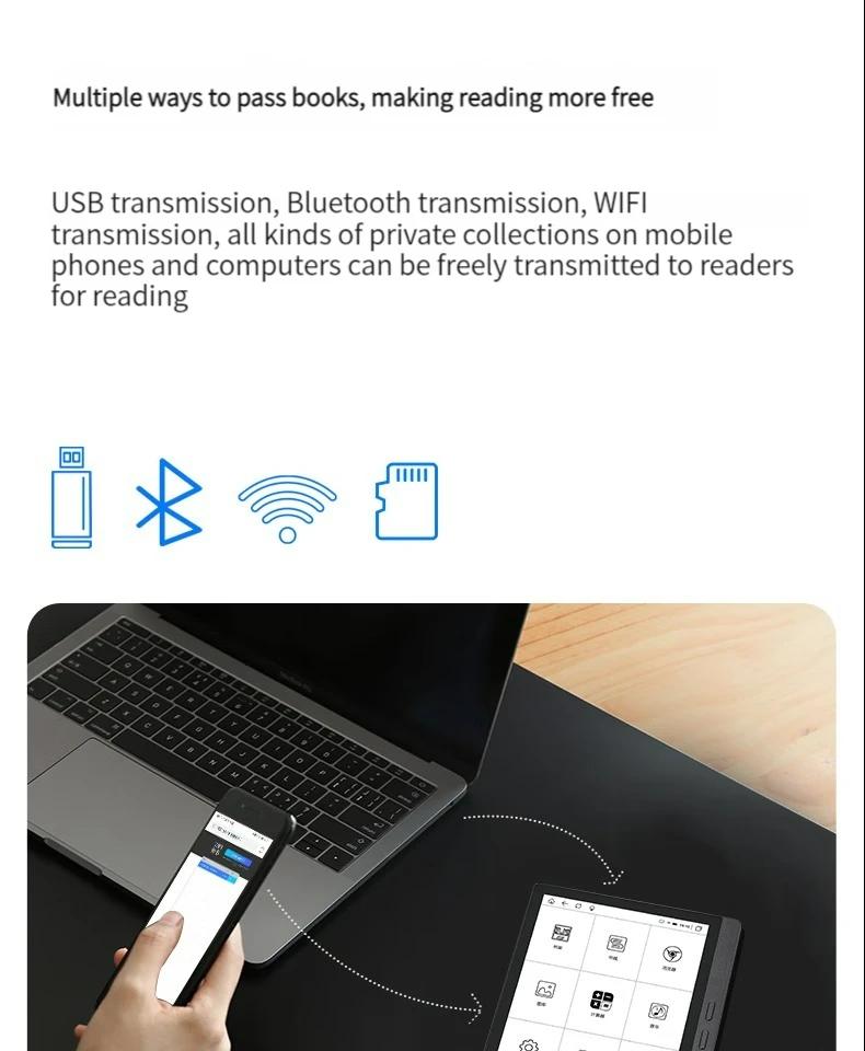 - There are multiple ways to transfer books, making reading more free: USB, Bluetooth, WIFI, and various private collections on mobile phones and computers can be freely transferred to readers for reading.