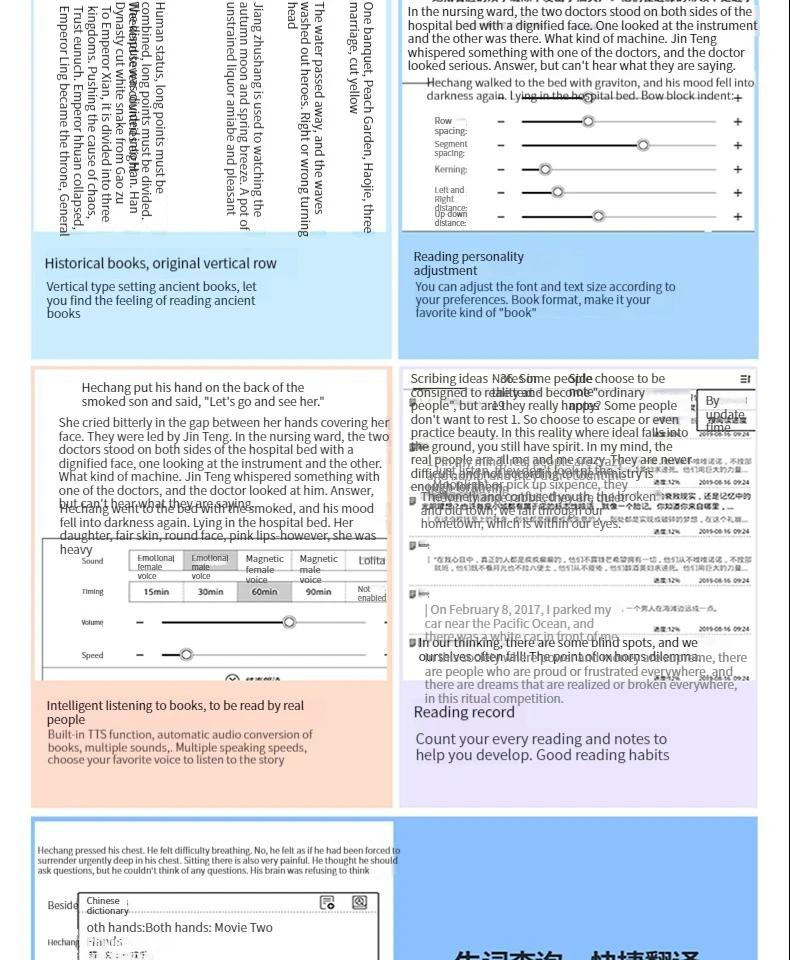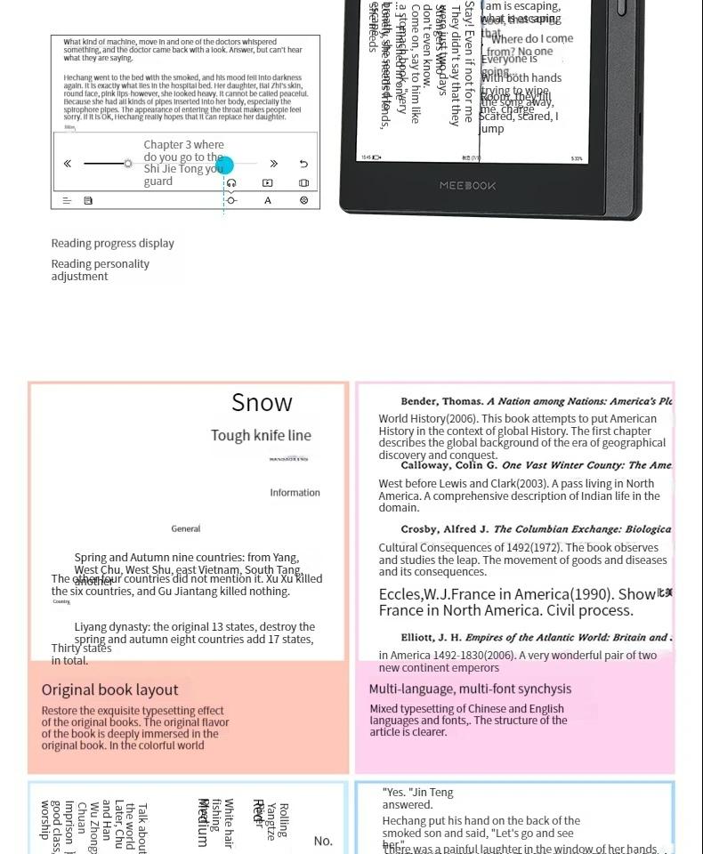- Original book layout/multilingual, multi font mixed layout/vertical arrangement of ancient books/reading progress display/personalized reading adjustment.
