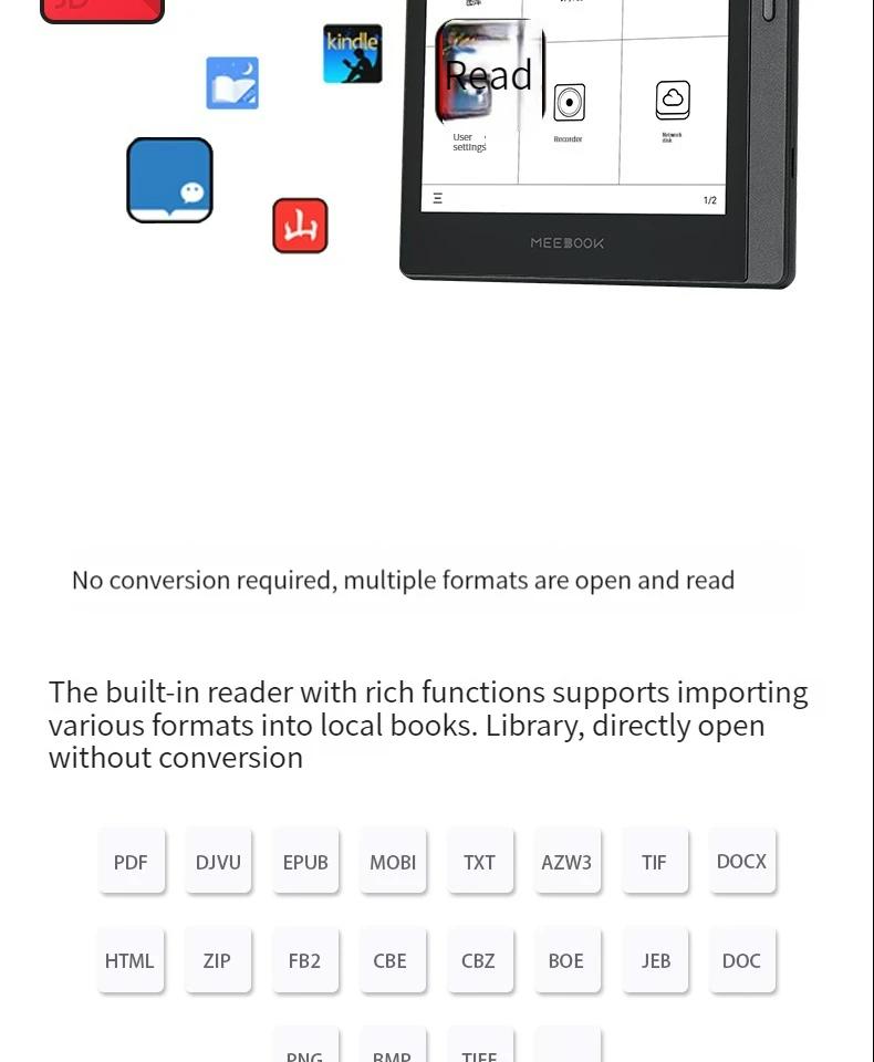 - A feature rich built-in reader that supports importing various formats into a local library, allowing for direct opening without the need for conversion.