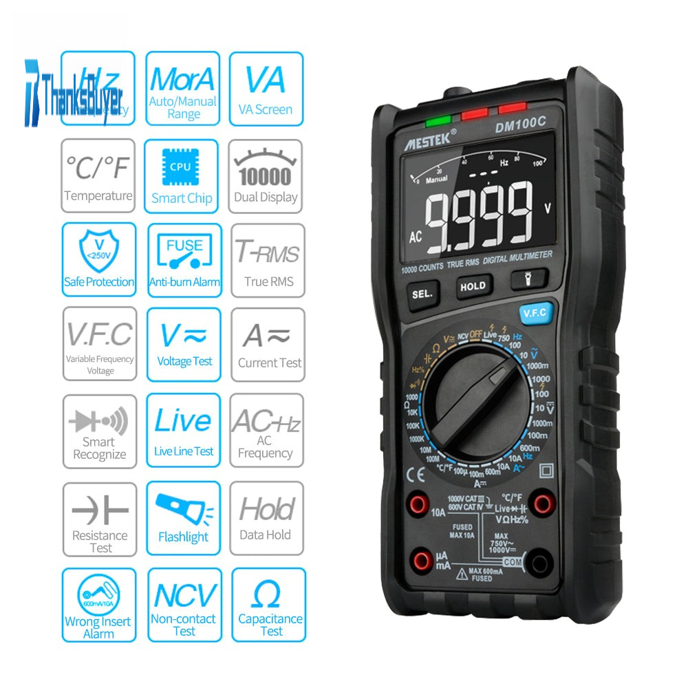 MESTEK DM100C Digital Multimeter Manual Automatic NCV Voltage Current Tester True RMS 10000 Counts