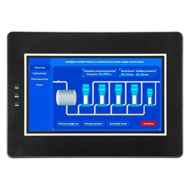 In the era of Internet of Things, global production sites are full of various forms of information. 7" IoT HMI can collect and use this information to easily implement IoT in the production site. As a compact HMI, it is equipped with a 7" wide screen and can build IoT through a large network interface and 4G network. It is suitable for today's mainstream of various large automated equipment and production lines. The color model also comes with a USB Type-A interface for connecting commercial USB devices (e.g., bar code readers, USB memory devices, etc.), so that a PC on the network can collect data from each device. The color model is only 7 inches but provides a high resolution of 16.77M Colors with true color display of 800x480 pixels, which makes it convenient to view and easy to operate.