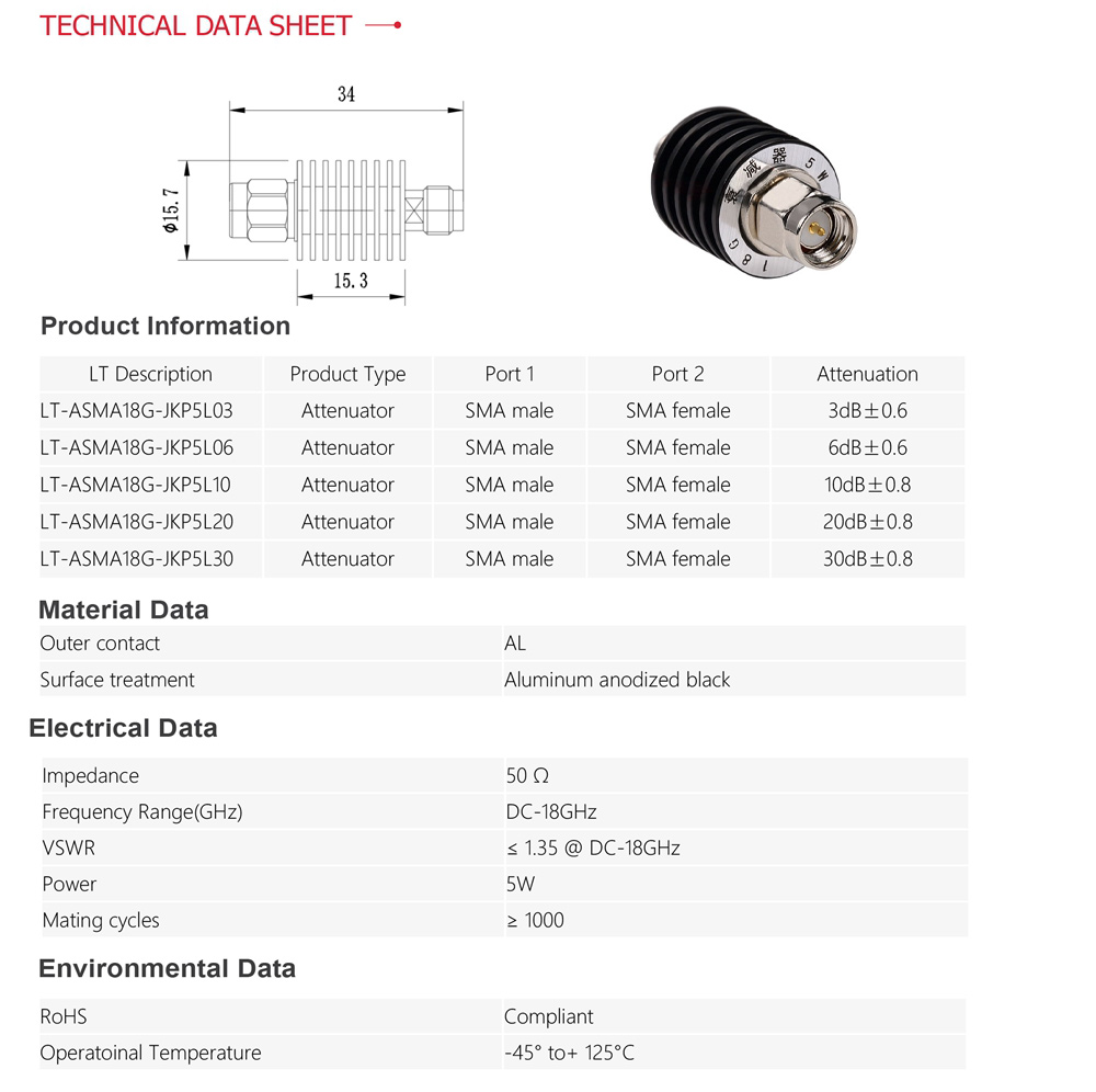 Microwave 20dB RF Attenuator High Quality Coaxial Fixed 5W Attenuator SMA-JK DC-18GHz Radio Accessory