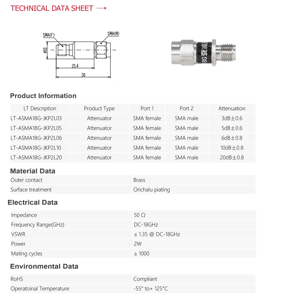 Microwave RF Attenuator 30dB High Quality Coaxial Fixed 2W Attenuator 50ohm SMA-JK-18G