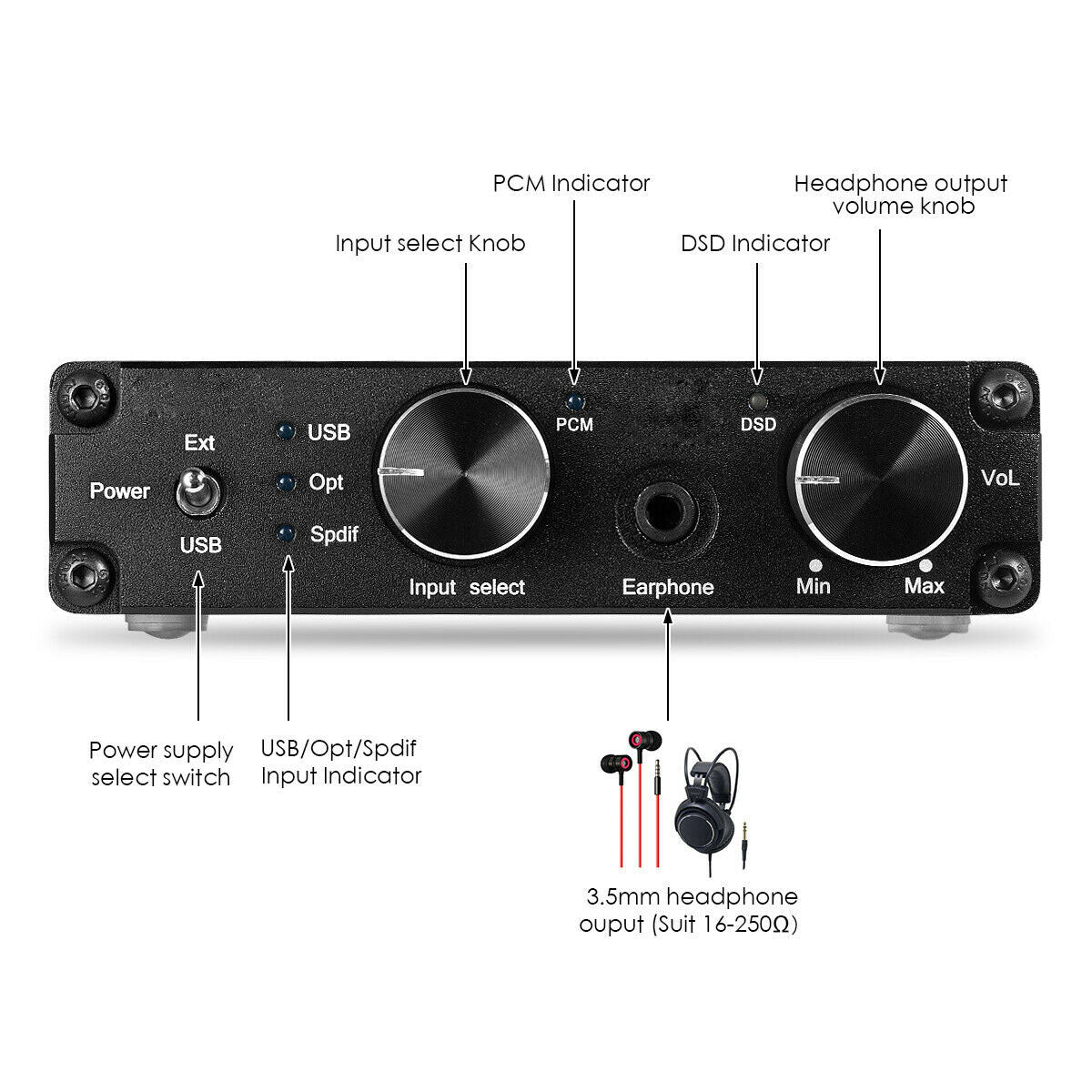 Mini DAC XU208 USB DAC Headphone Amplifier DSD1796 Chip Support Coaxial Optical Input Modes