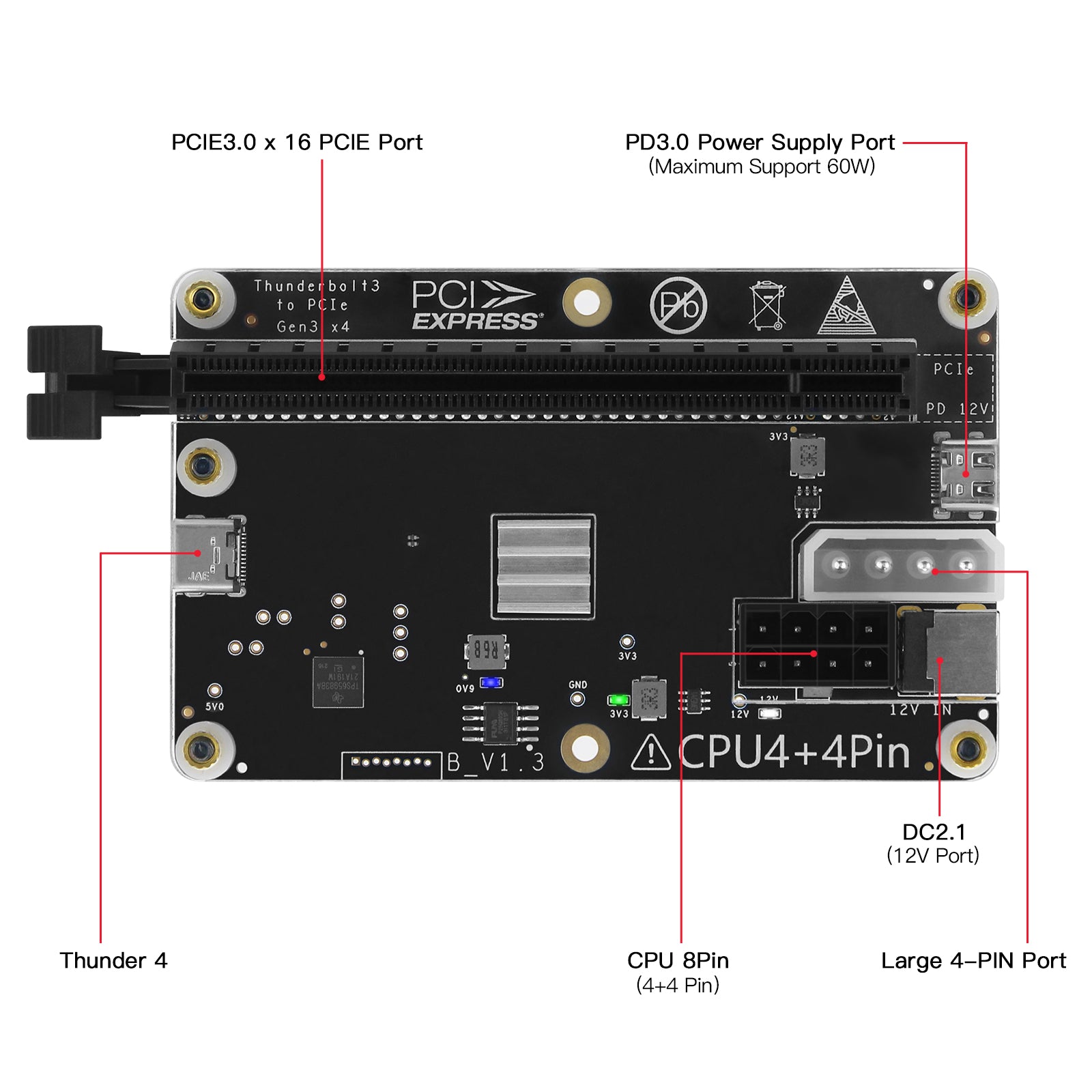 If you want to use an external non-graphics device, such as 10 Gigabit network card, hard disk for NVME, FPGA, audio acquisition card, etc., you can use a 12V 3A power supply (especially large power supply depends on the power of your device).