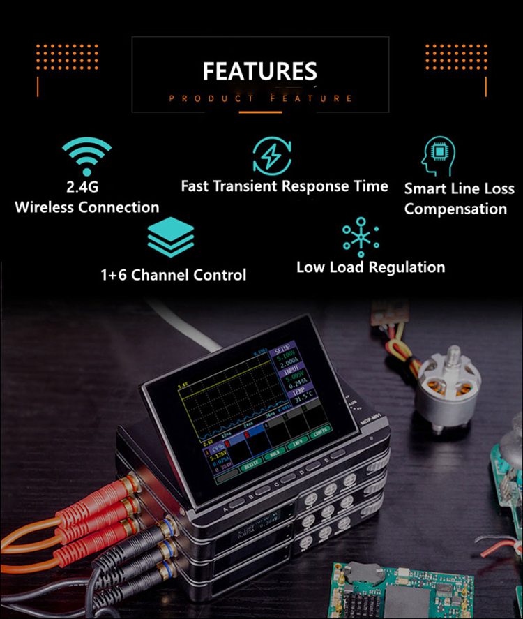 Through 2.4G wireless connection, a 90W multi-channel free combination can be realized. It is a cost-effective programmable linear DC power supply. It has professional power indicators, stability and reliability, and a clear user interface. It provides powerful functions such as program-controlled output, timing output, timing control, and automatic compensation to meet diverse testing needs.