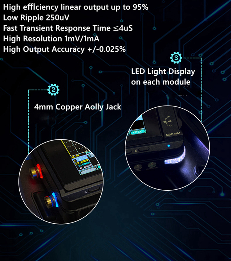 MDP-P905 Digital Power Supply: High-efficiency linear output, 0.25mV ripple, extremely fast transient response. Support precise trimming.
