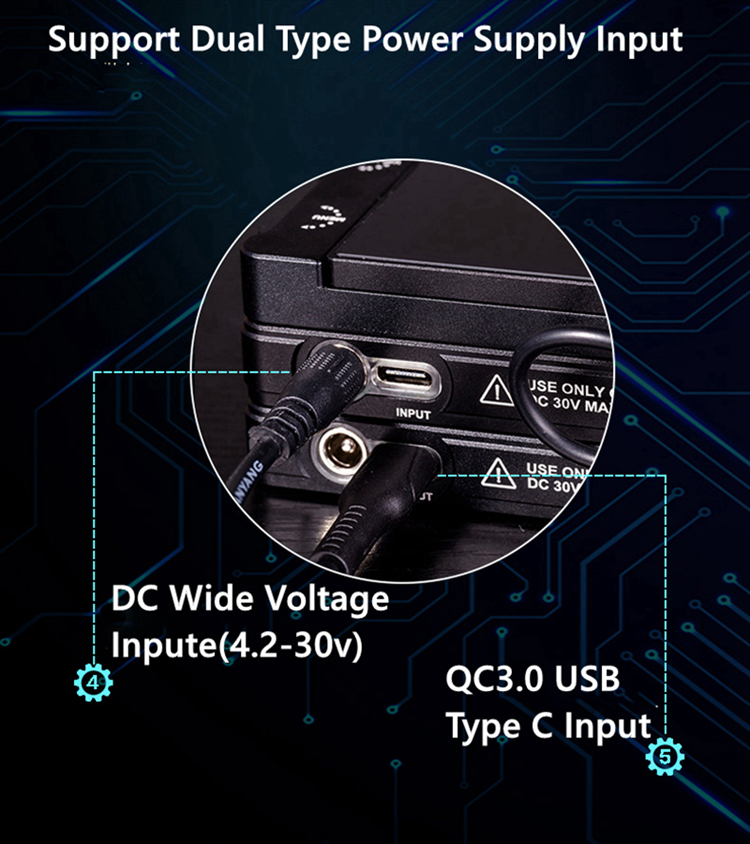 - Input Power: DC4.2-30V(2.7V after start-up), 100mA-6A. Support QC3.0