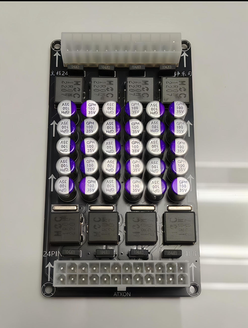 - Dedicated for PCHIFI, with ATX power purification, and the model is motherboard24. Adopting LCL filtering architecture, all solid state capacitors combined with high current integrated inductors, stable and effective. After the computer power supply passes through this filter, the 5AVUSB, 12V, 3.3V and other onboard power supply lines are all independently filtered, reducing ripple to around 10uV. Comparable to linear power sources.