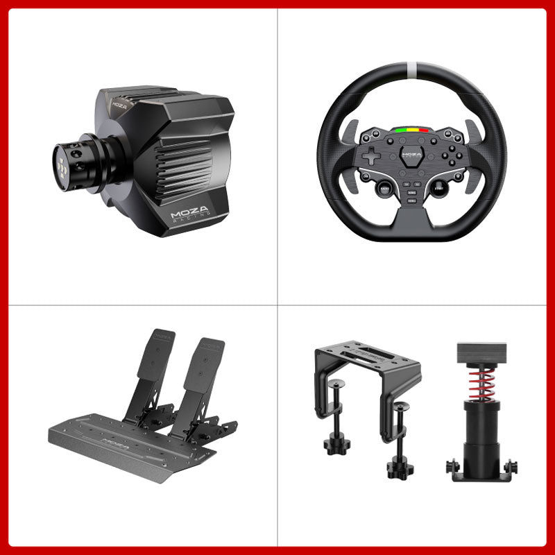 MOZA R3 Wheel Base + 11" ES Lite Steering Wheel + 2-Pedal SRP Lite + Performance Kit + Table Clamp for PC