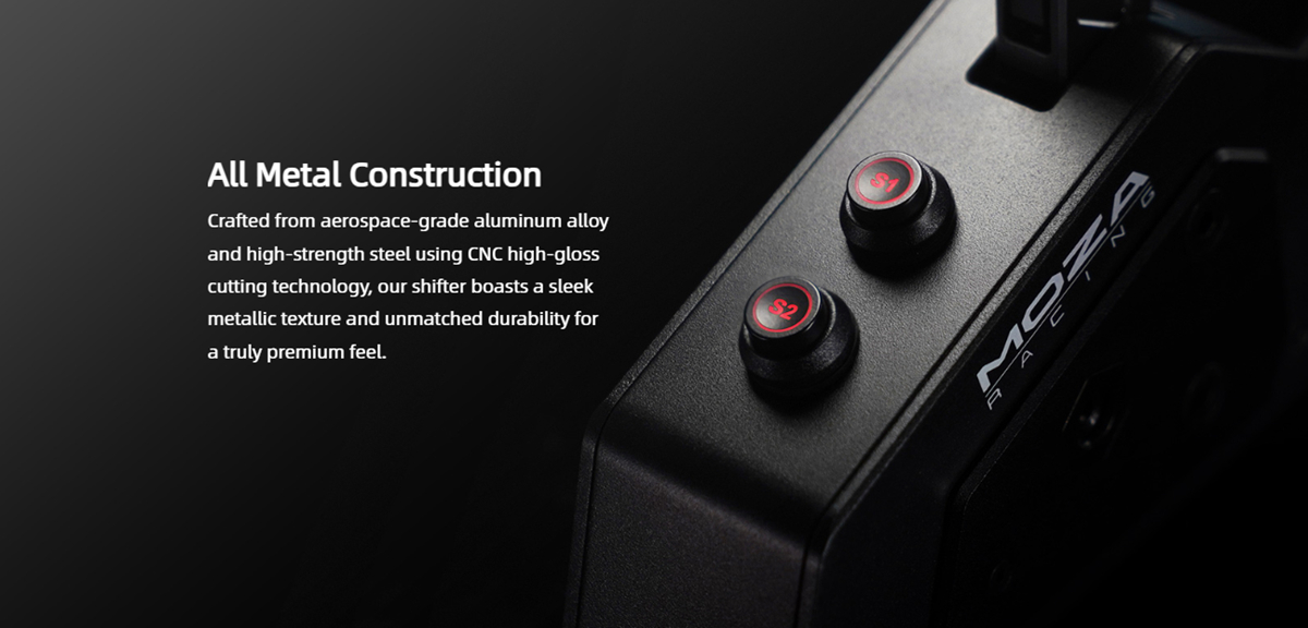 Experience ultimate racing immersion with our premium all-metal construction gear shifter, engineered with aerospace-grade aluminum and high-strength steel. Precision design delivers smooth and accurate shifts, replicating the feel of a real sequential gearbox. Our shifter features a versatile multi-functional handle, a non-contact Hall sensor for consistent performance, customizable RGB backlit buttons, and personalized adjustability for comfort. Upgrade with an easy-to-change shifter knob and enjoy seamless PC connectivity. Tested for durability to ensure reliable, high-quality performance race after race.