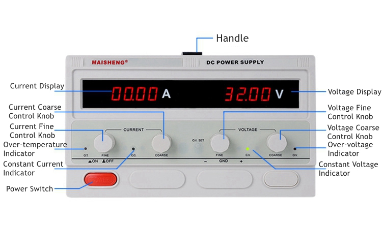- Display resolution: 4-digits highlight LED display 0.01V, 0.01A