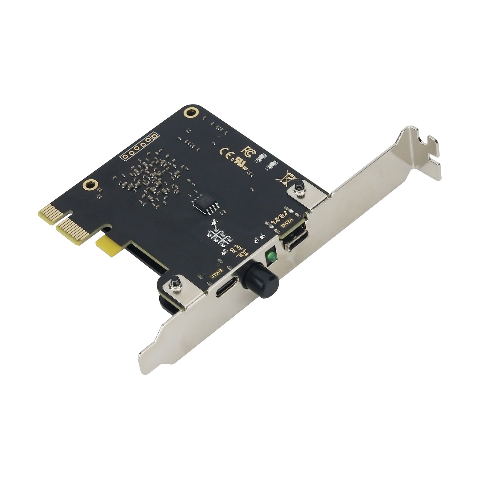 With the On-Board JTAG you can flash the board for LeetDMA easily with just an USB connection from the Update Port. You are not forced to use complicated JTAG cables.
