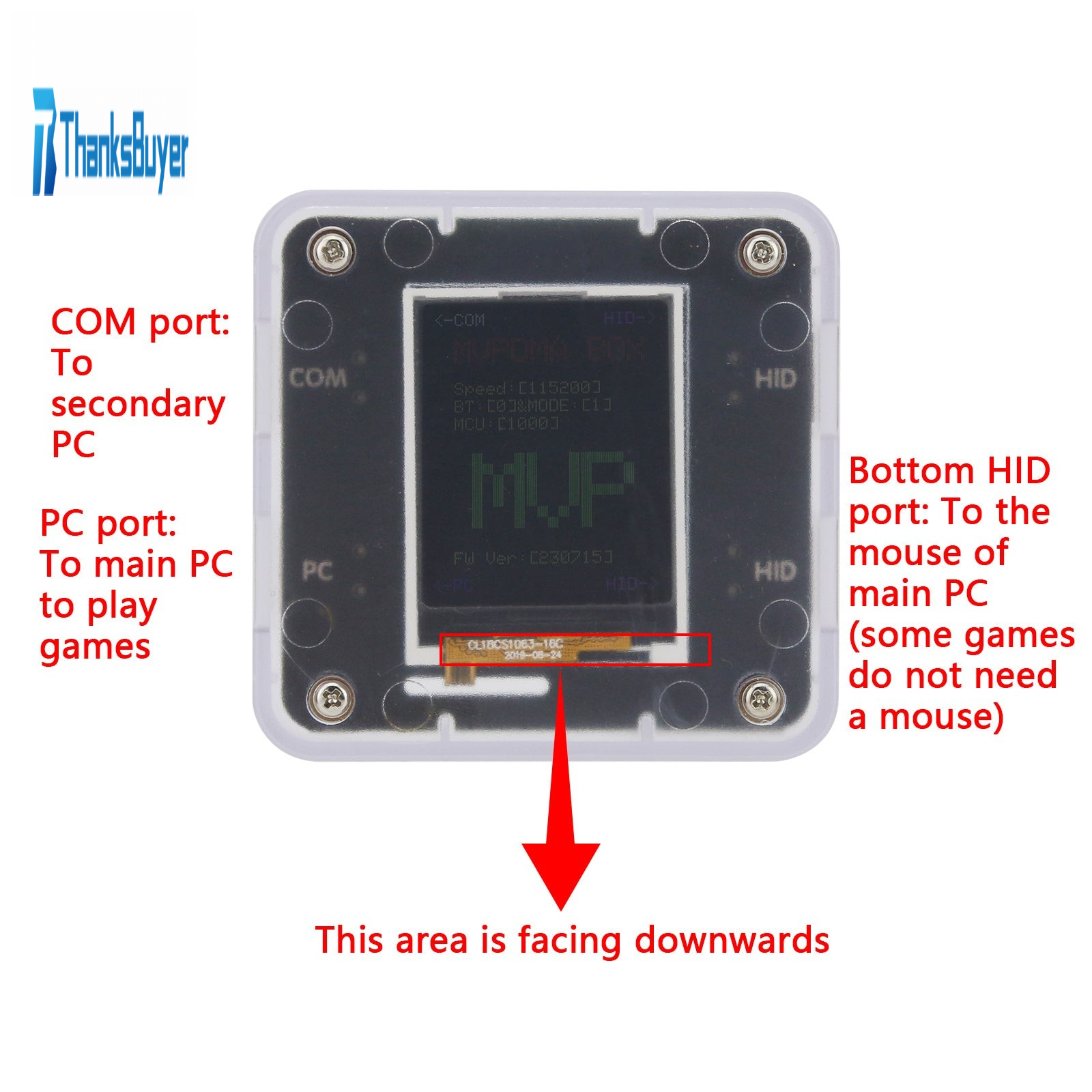 - HID port: To the mouse of main PC