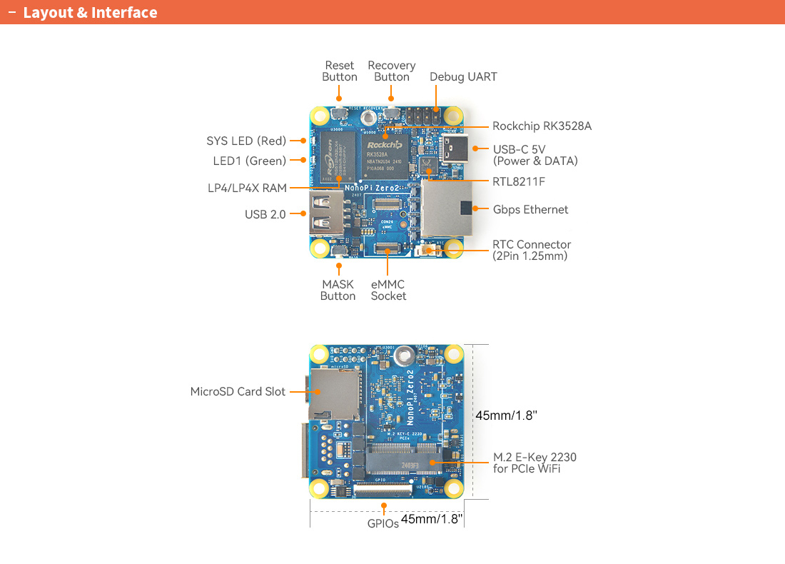NanoPi Zero2 Combo 1GB RAM GigE Computer w/ RK3528A Development Board & Wifi Module (without eMMC)