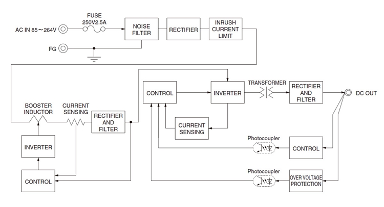 - Built-in inrush current, overcurrent and overvoltage protection circuits