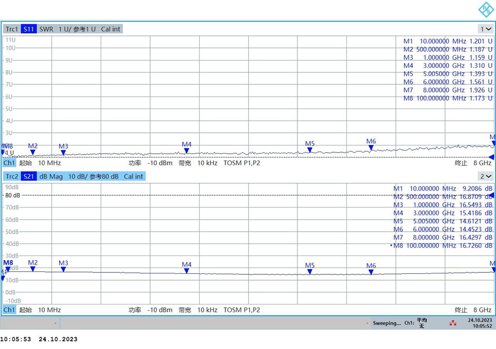 - It is an ultra-wide band low phase noise amplifier with full frequency band of 100M-8000M, noise coefficient <= 4.5, GdB gain > 16dB and very good flatness less than 2dB.