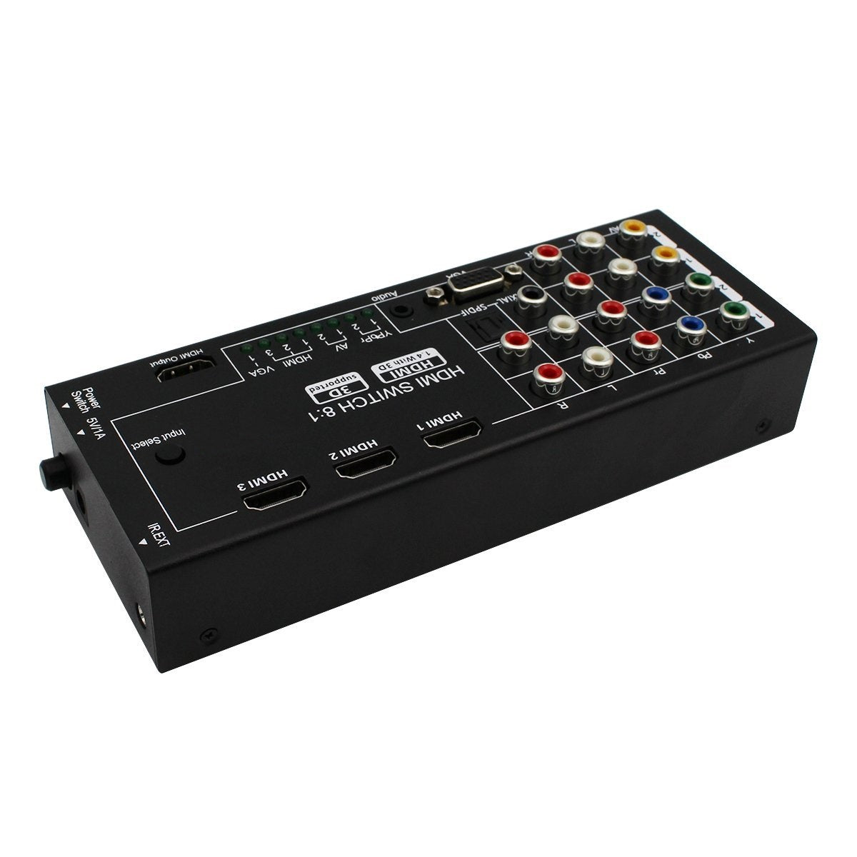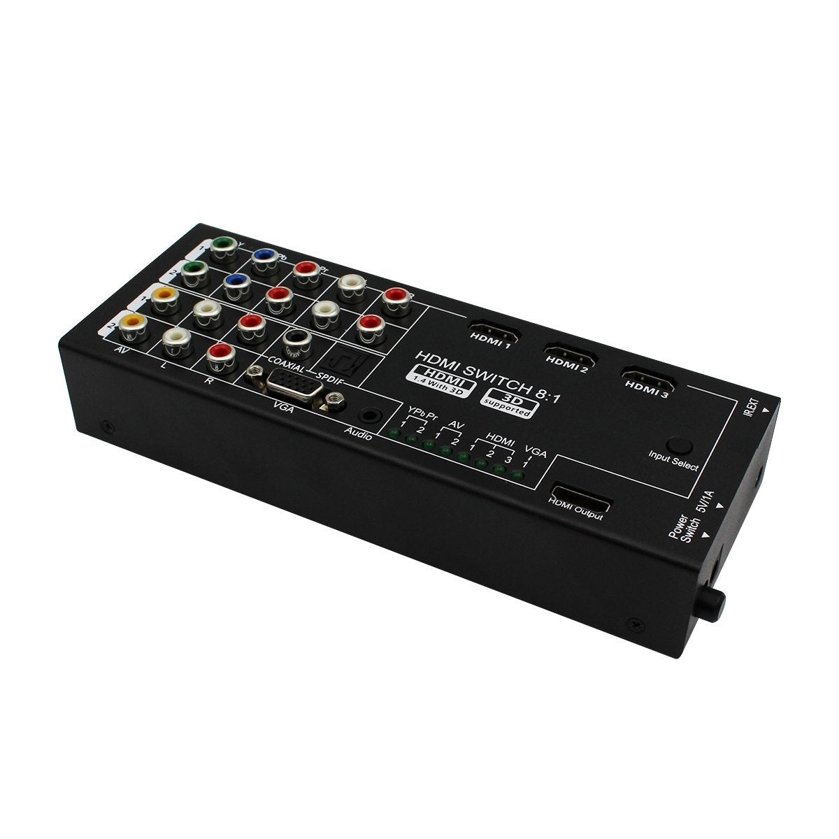 - Inputs contain 2xYPBPR, 2xAV, 1xVGA and 3xHDMI signals, Output is HDMI signal and digital audio signal. No image or color distortion