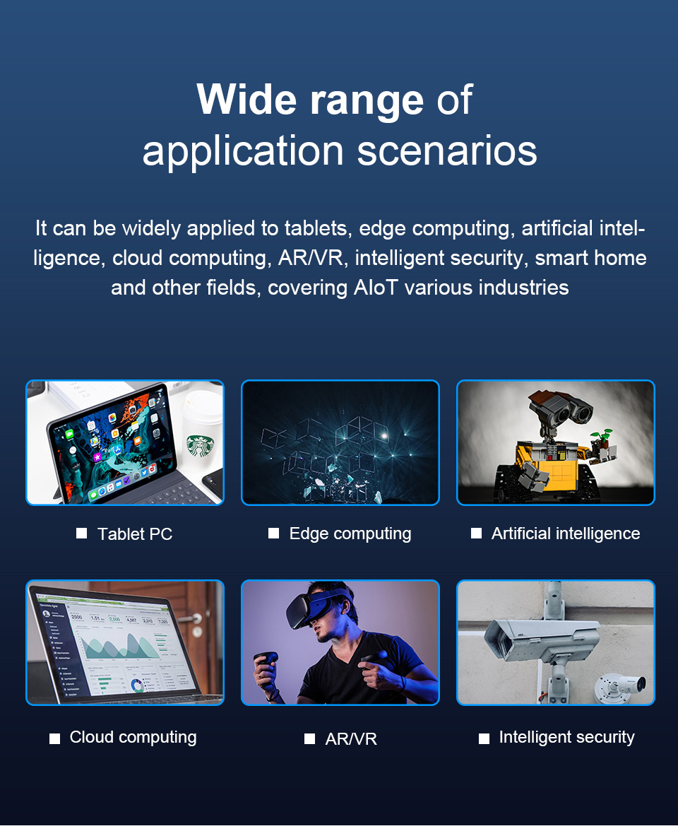 Orange Pi 5 provides abundant interfaces, including HDMI output, 26PIN expansion port, M.2 PCle 2.0, Type-C, Gigabit LAN port, 2*USB 2.0, 1*USB 3.0, etc. It can be widely used in tablets, edge computing, artificial intelligence, cloud computing, AR/VR, intelligent security, smart home and other fields, covering AloT various industries.