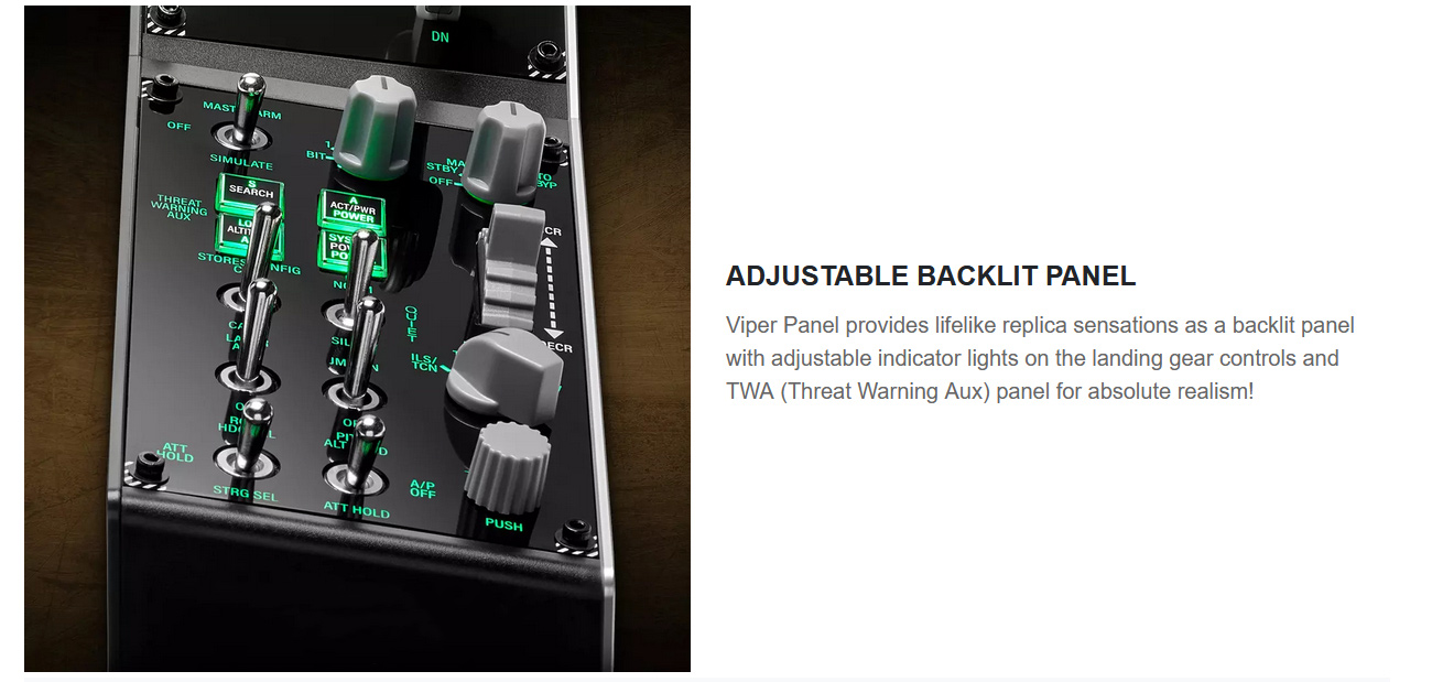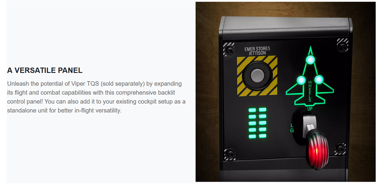 - Unleash the potential of Viper Panel by expanding its flight and combat capabilities with Viper TQS (Throttle Quadrant System), a 1:1 scale replica metal throttle handle (sold separately)