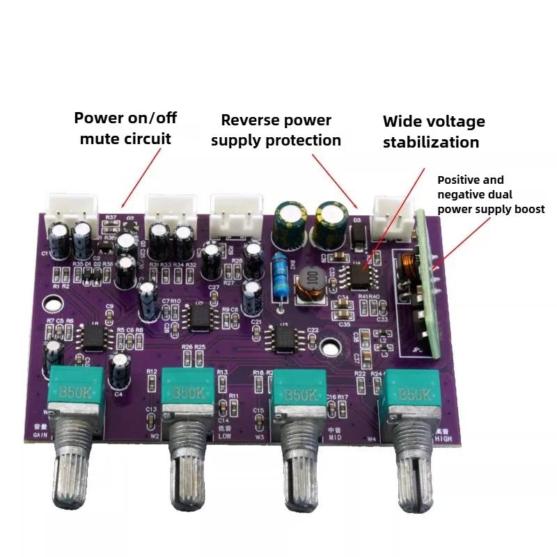 - This circuit adopts three NE5532 chips for TI, featuring one stage of gain, one stage of buffering, and one stage of tone processing.