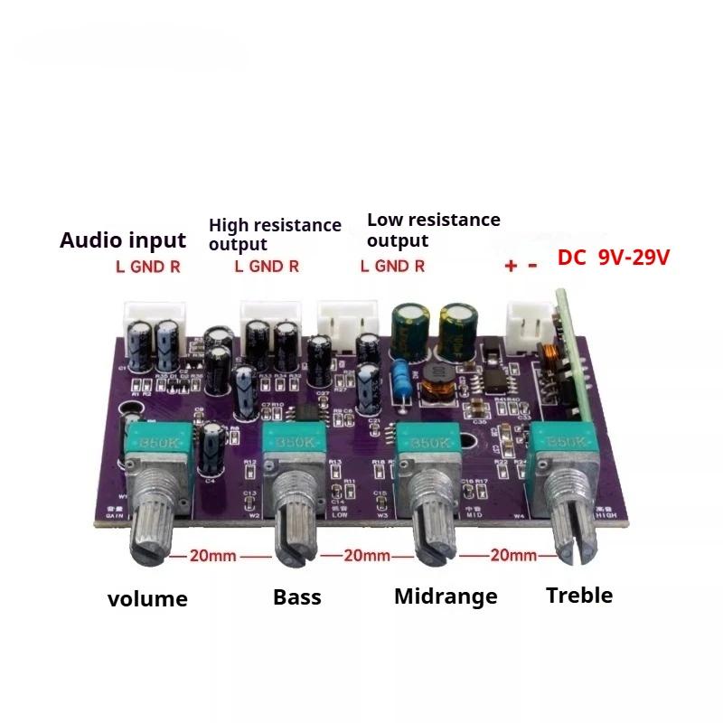 - It is equipped with a built-in boost module that can convert a single power supply into ±14.5V dual power supplies to power the circuit. It features a wide dynamic range and strong driving force, capable of driving high-power amplifiers.