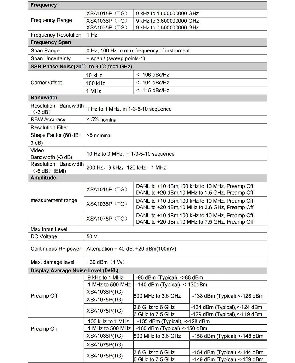 - Displayed average noise level (DANL): -163dBm