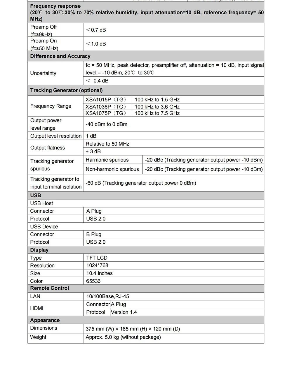 OWON XSA1015P-TG 9kHz-1.5GHz Spectrum Analyzer Tracking Generator with 10.4-inch TFT LCD Touch Screen