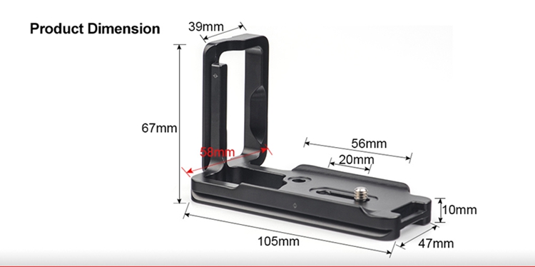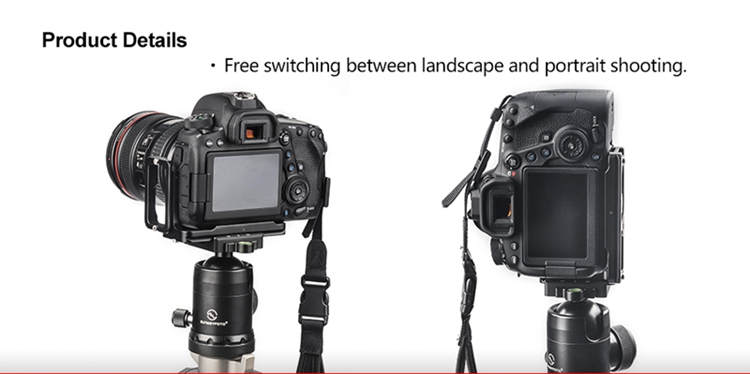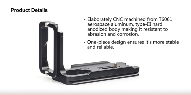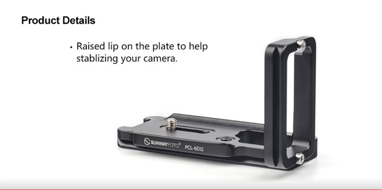 PCL-6DII Custom L bracket for Canon 6DII body is CNC cutting machined from light weight aircraft-grade aluminum, stain anodized surface finish for better abrasion and corrosion resistant.