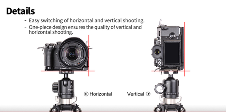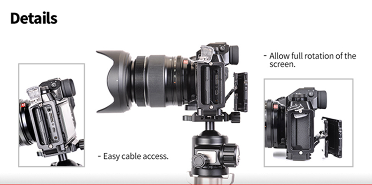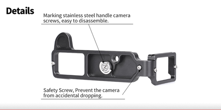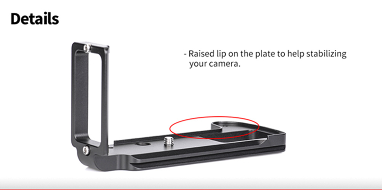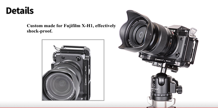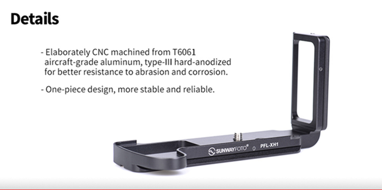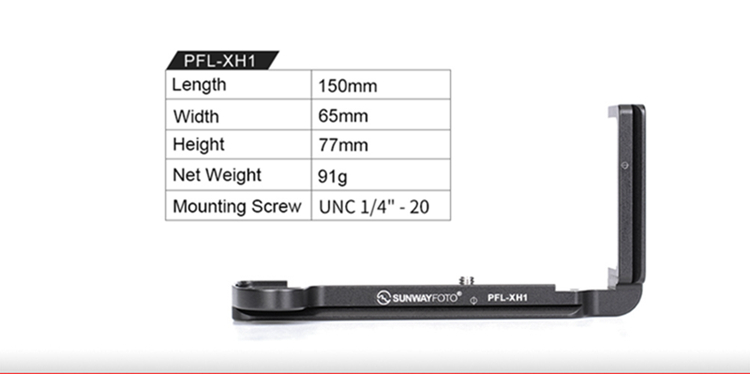 PFL-XH1 specific L bracket is exquisitely CNC machined from T6061 Aerospace grade aluminum alloy, and type III hard-anodized finish ensures its abrasion and corrosion resistance. Suitable for Arca QR system. Users can freely switch horizontal and vertical shooting without influencing the stability and efficiency when using your camera on tripod and effectively avoids shifting.