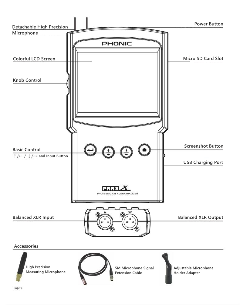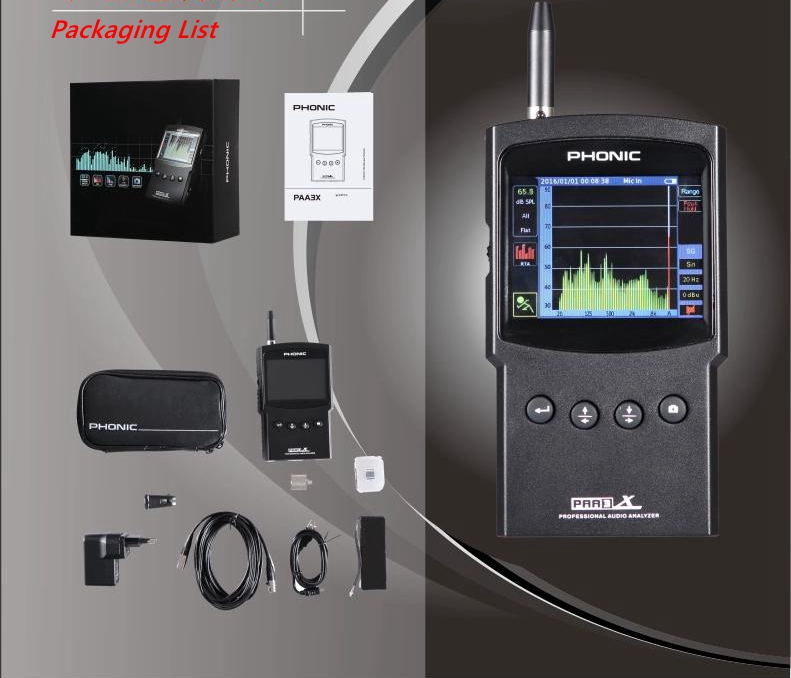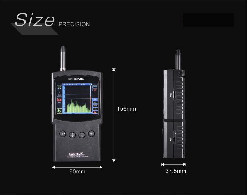 PHONIC PAA3X High Precision Handheld Audio Spectrum Analyzer Support Screenshot Balanced XLR Input/Output