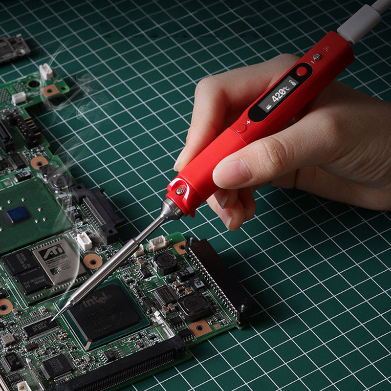 It adopts an internally heated ceramic heating core, which conducts heat through pure copper and quickly transfers heat to the tip of the soldering iron. The temperature control performance is stable. The soldering iron tip can be easily and quickly replaced by easy-to-push fasteners.