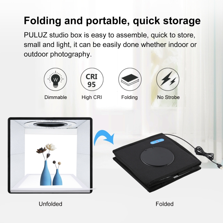 3. Easy to assemble (real three seconds to assemble and use), you can unfold this LED light box shed and place it on any surface to get a good background for commercial photography of small items and take pictures of the product.