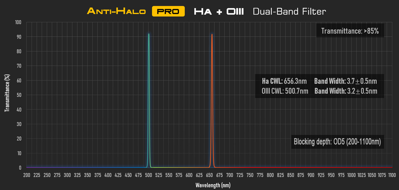 - Item name: Anti-Halo PRO Dual-Band 2" Ha+OIII Filter