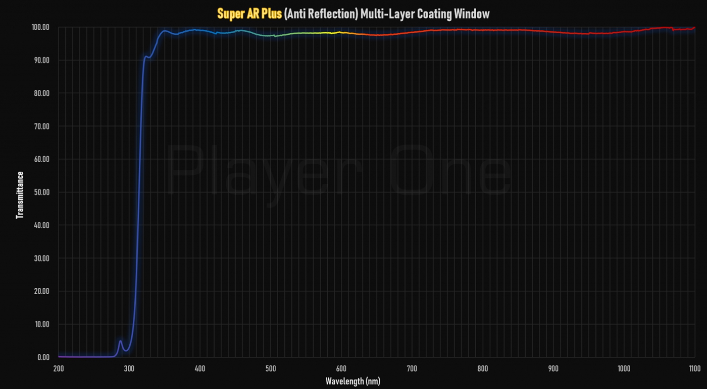 NEPTUNE 664C uses this Super AR Plus window in front of it. This window glass can give super high transmittance from 310nm to 1100nm. With this important improvement, NEPTUNE 664C camera has a much better performance in ultraviolet and NIR.