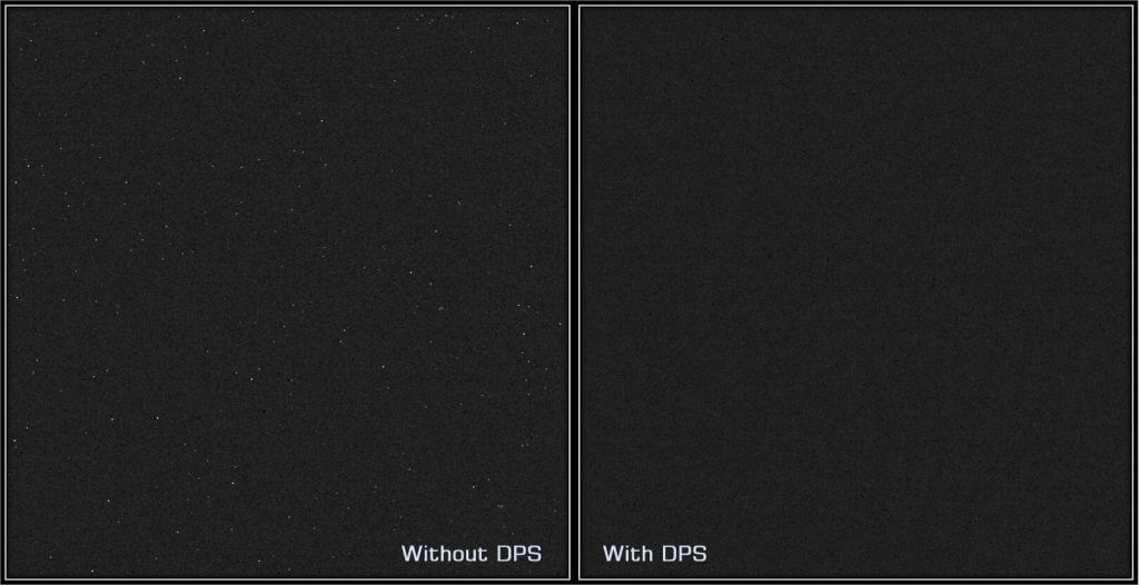 The planetary cameras from Player One Astronomy have DPS (Dead Pixel Suppression) technology. The DPS can analyze many dark frames to find out those fixed abnormal pixels and record the map in camera memory. In imaging, each exposure frame and those positions of dead pixels will be given a median value according to the active pixels around the abnormal pixels.