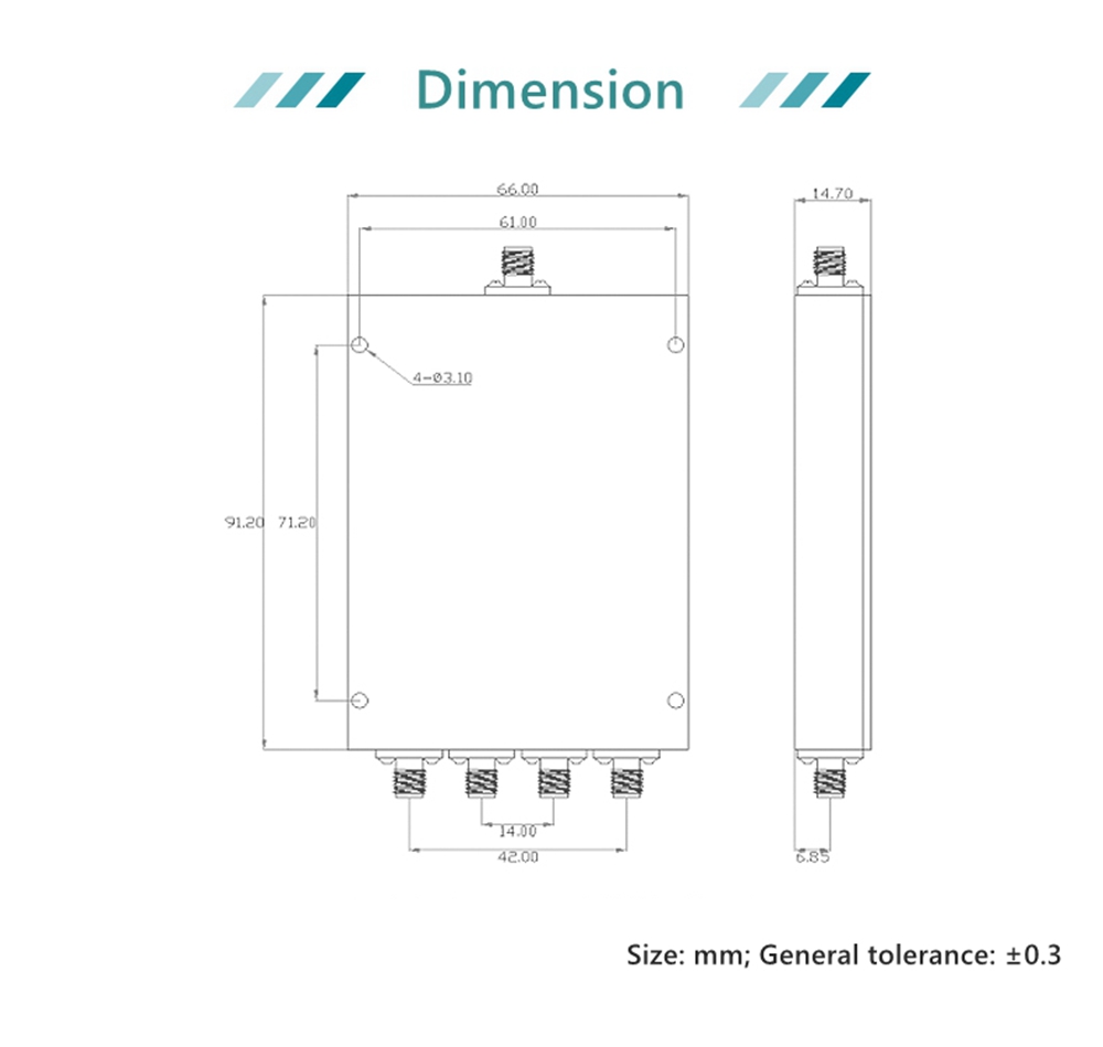 - Insertion loss: ≤1.8dB (not included the theoretical loss 6.0dB)