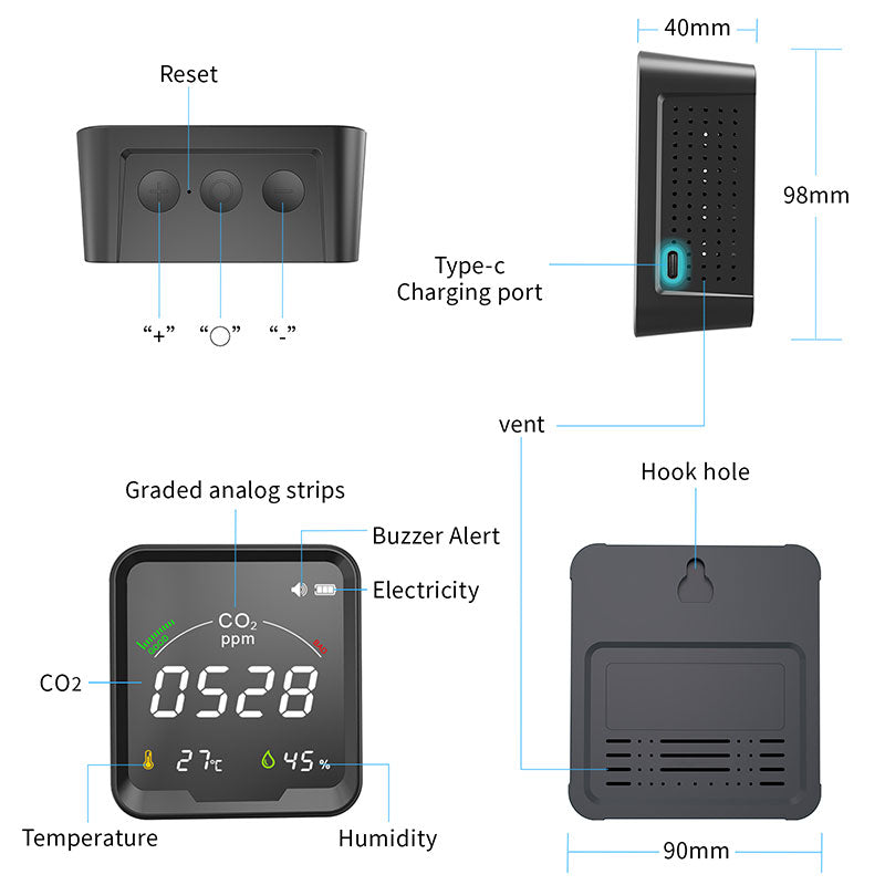 PTH-9CW Carbon Dioxide Monitor CO2 Detector Air Quality Monitor Tester for CO2 Temperature Humidity