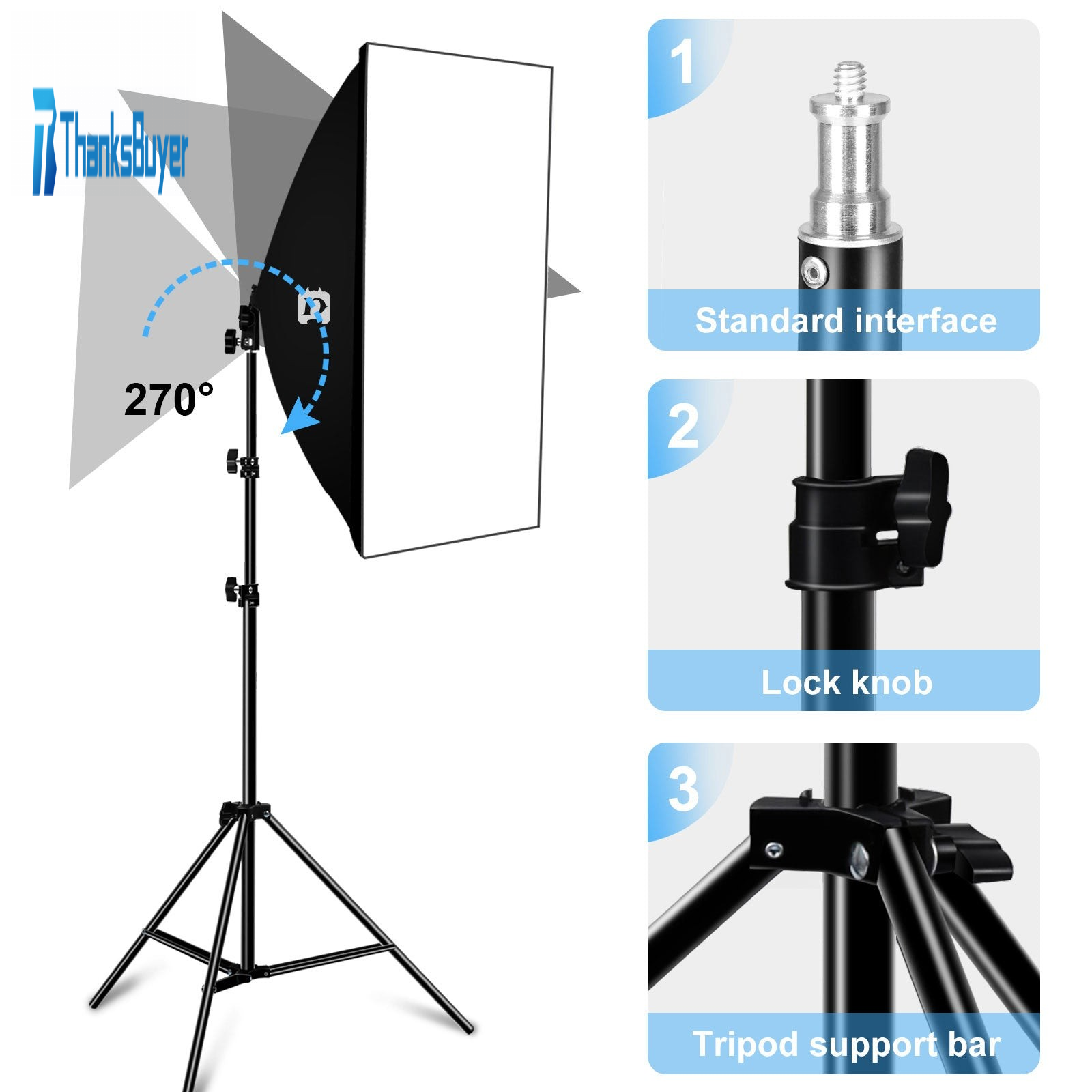 3. Studio light stand tripod is 54cm to 1.6m adjustable height tripod. Made of premium aluminum alignment with 1/4 screw mounting on top to satisfy different photographers.( Softbox photo lighting angle can be 270 degree adjustable lamp holder, can adapt different shooting needs, give you the suitable light from multiple angles, setting-easy with a few minutes, ideal portrait, studio, photography, video and so on).