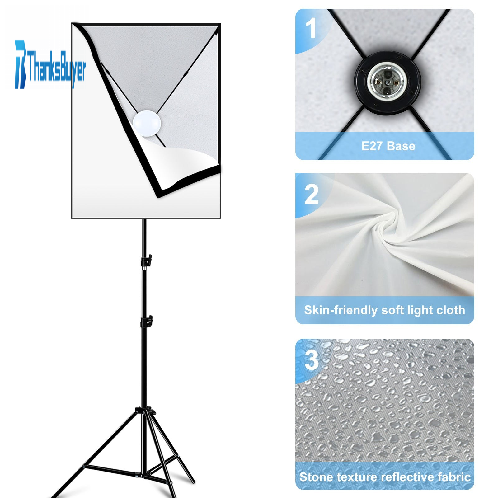PU5070 50x70CM Softbox Lighting Kit With One E27 5700K Bulb 1.6M Light Tripod For Photo Studio