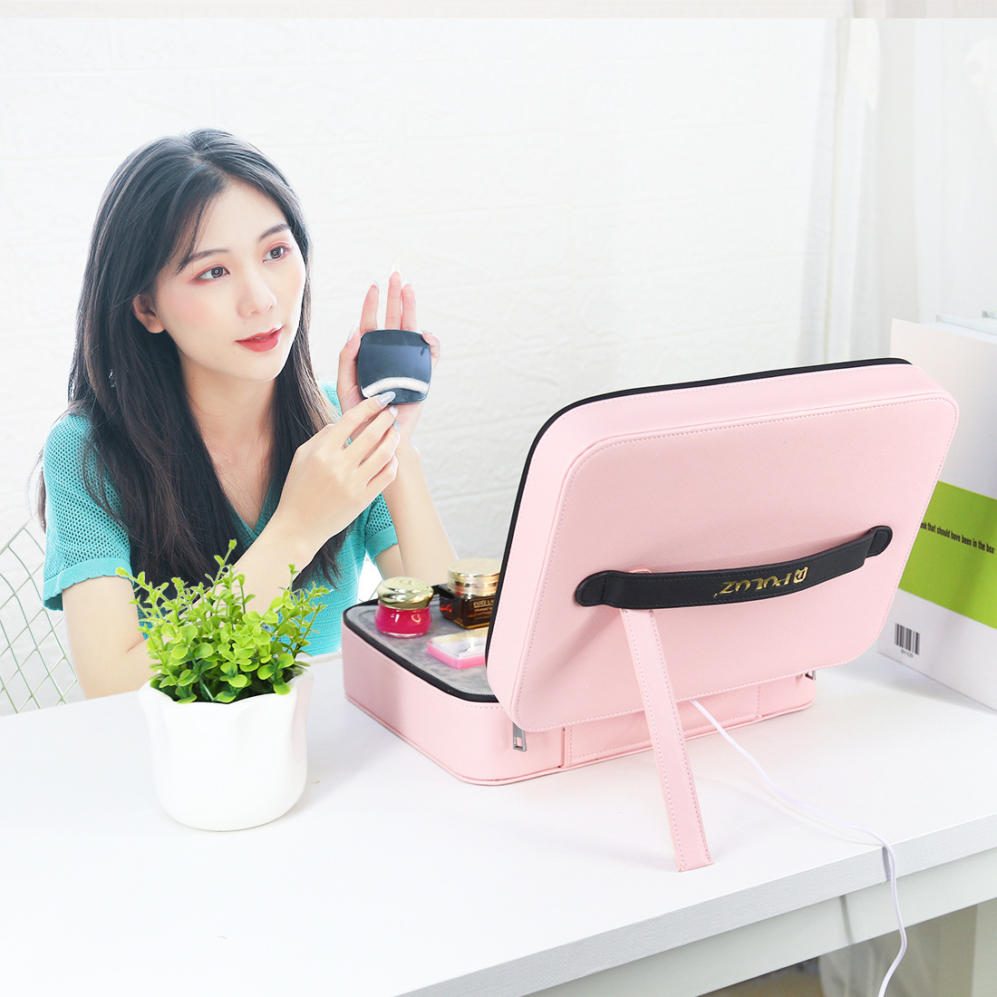 PU516 Travel Cosmetic Bag Organizer Kit with Live Broadcast Ring Light Makeup Mirror Phone Clamp