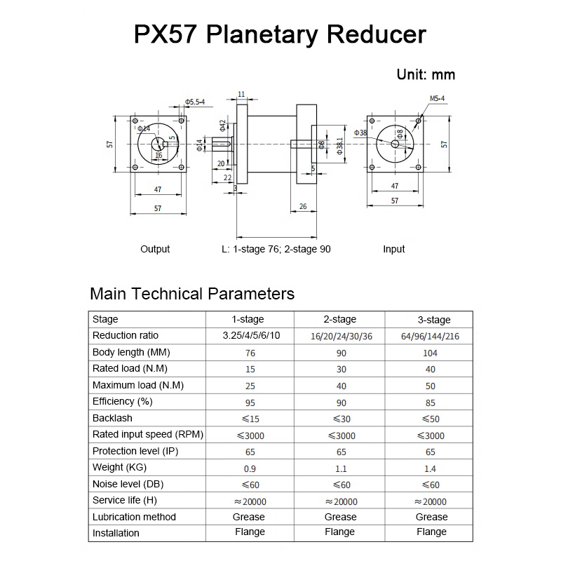 PX57 Planetary Reducer Planetary Gearbox Ratio 3.25/4/5/6/10 for Nema 23 Stepper Motor Servo Motor