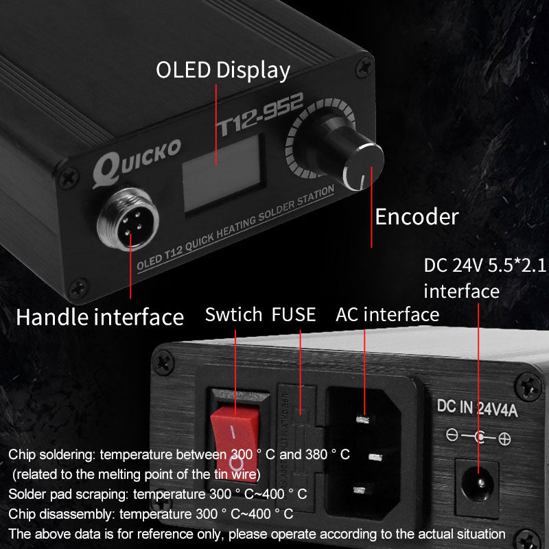 QUICKO T12-952 OLED T12 Quick Heating Solder Station Kit EU w/ 907 Soldering Handle & Soldering Tip