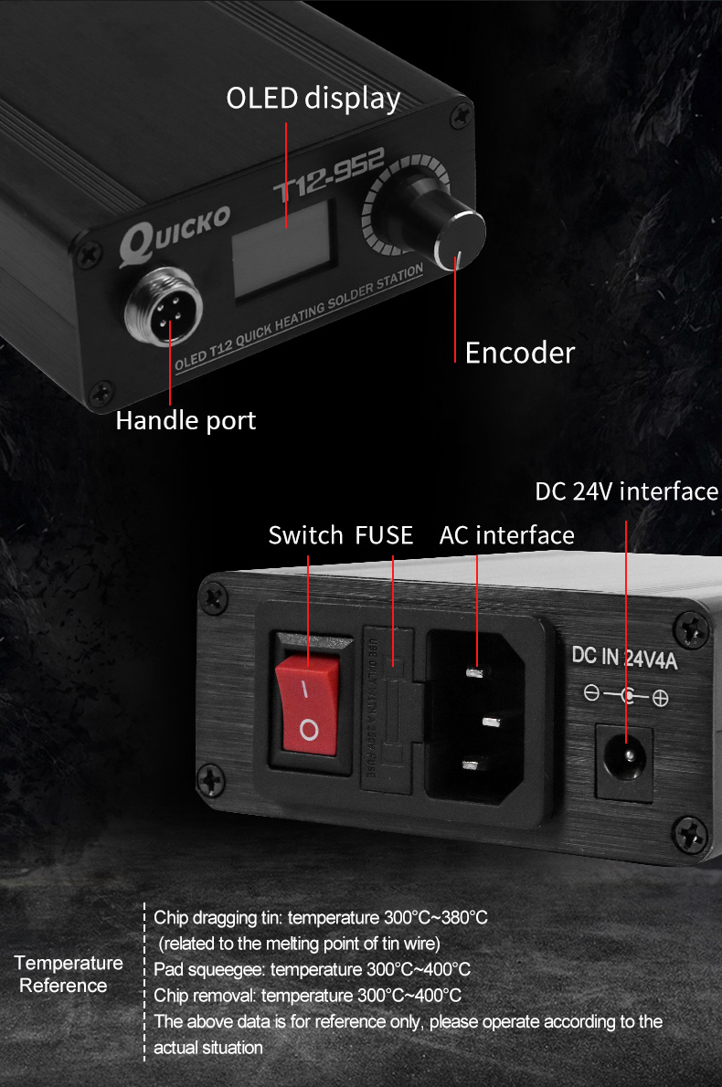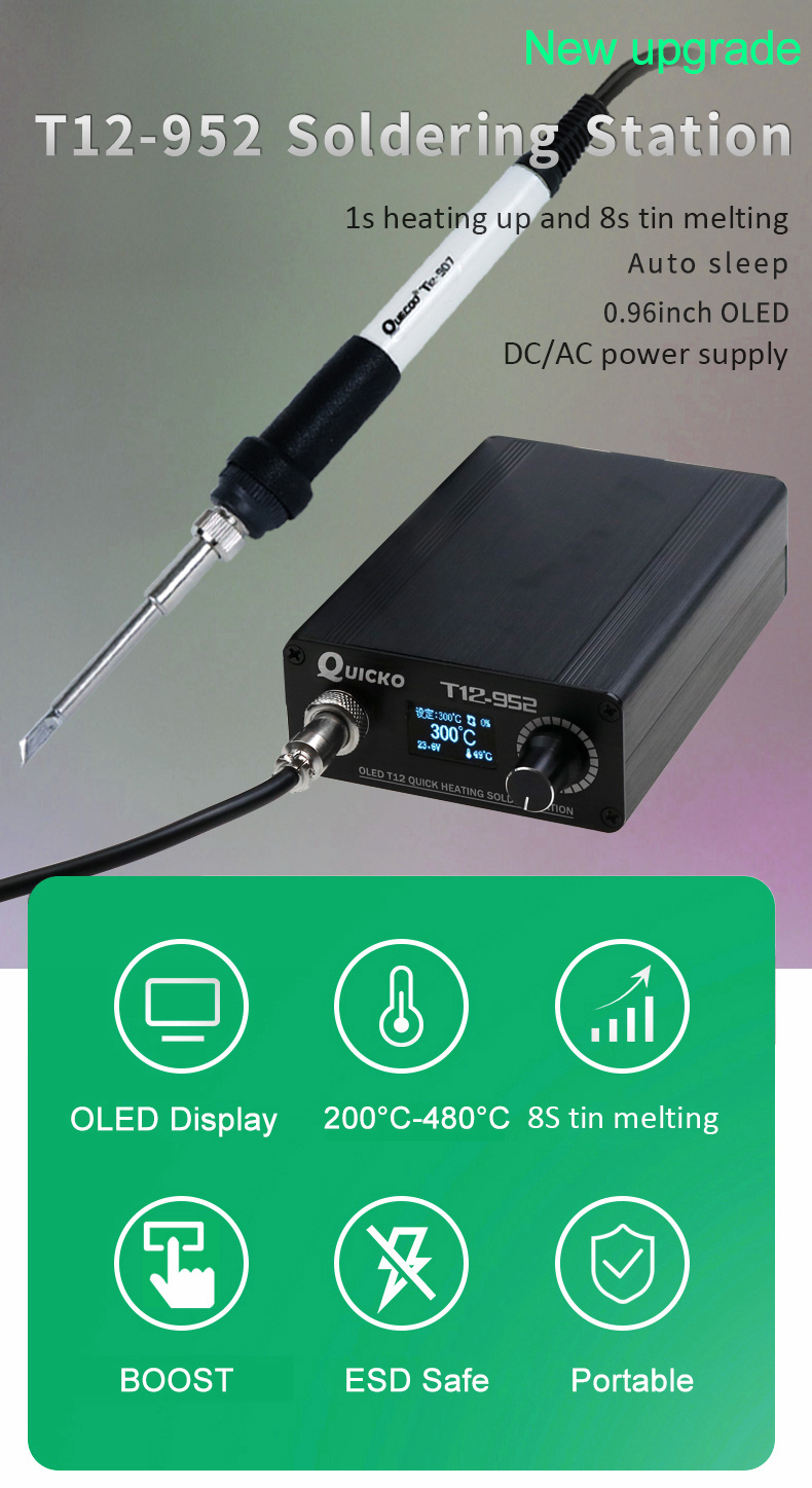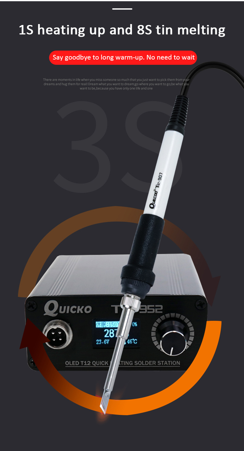 QUICKO T12-952 OLED T12 Quick Heating Solder Station Kit UK w/ 907 Soldering Handle & Soldering Tip