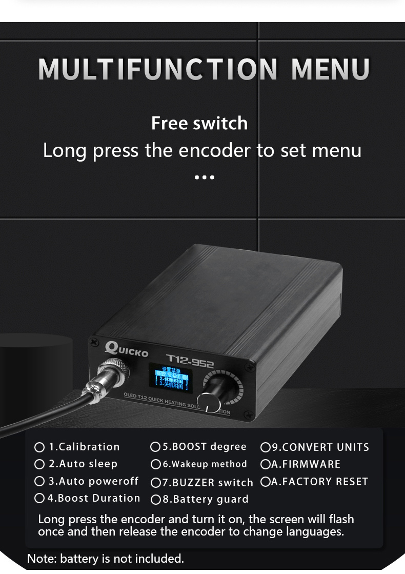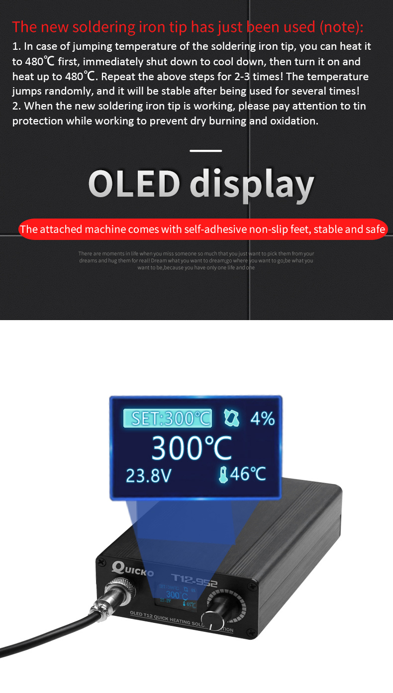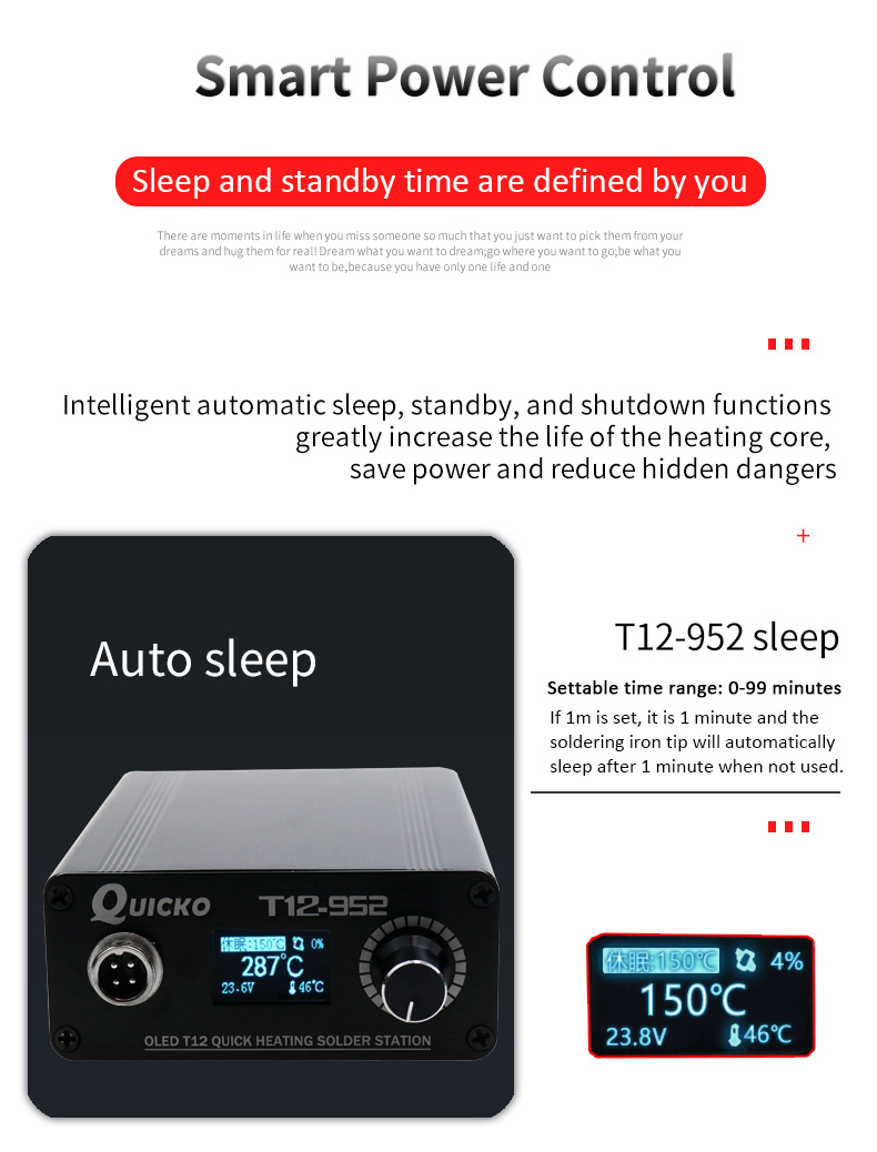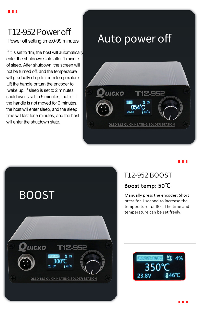 QUICKO T12-952 OLED T12 Quick Heating Solder Station Kit UK w/ 907 Soldering Handle & Soldering Tip